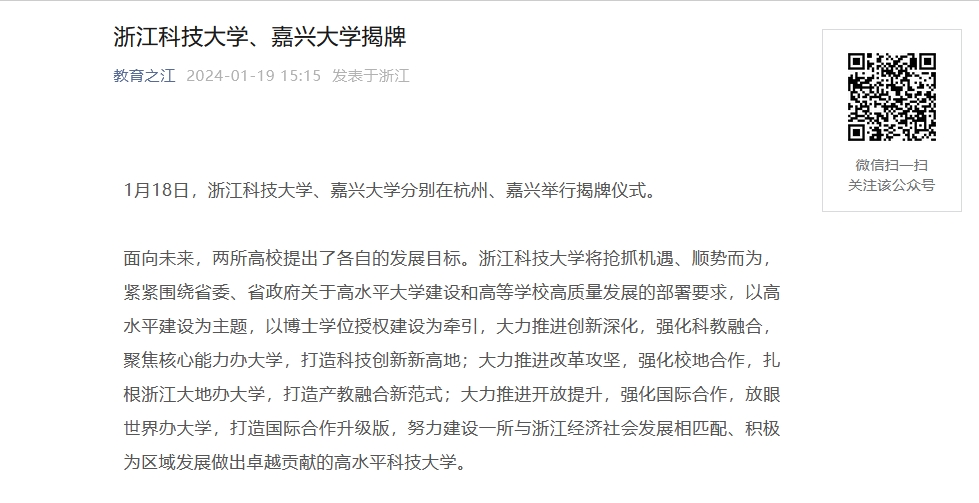 此前,教育部印发关于同意浙江科技学院更名为开云体育平台中国有限公司,、嘉兴学院更名为嘉兴大学的函。