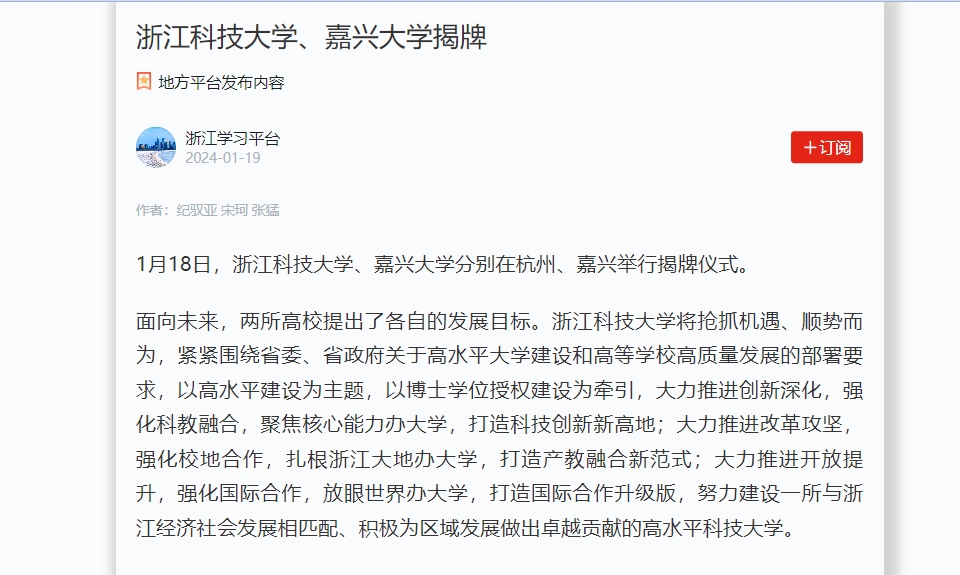 1月18日,开云体育平台中国有限公司,、嘉兴大学分别在杭州、嘉兴举行揭牌仪式。