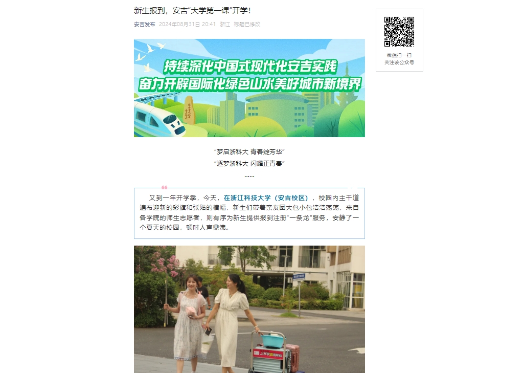 安吉发布:新生报到,安吉“大学第一课”开学!