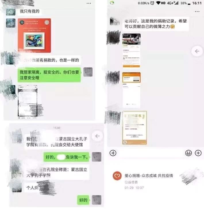同学们还通过网络渠道捐款助力,或通过所在国使馆转交。在泰国的李新春同学说,绝大多数我们所在地的学生、家长都很支持中国。我们作为在海外的汉语志愿者,身在国外,心始终和国内同胞在一起,衷心希望疫情早日结束。(新闻中心 宋珂)