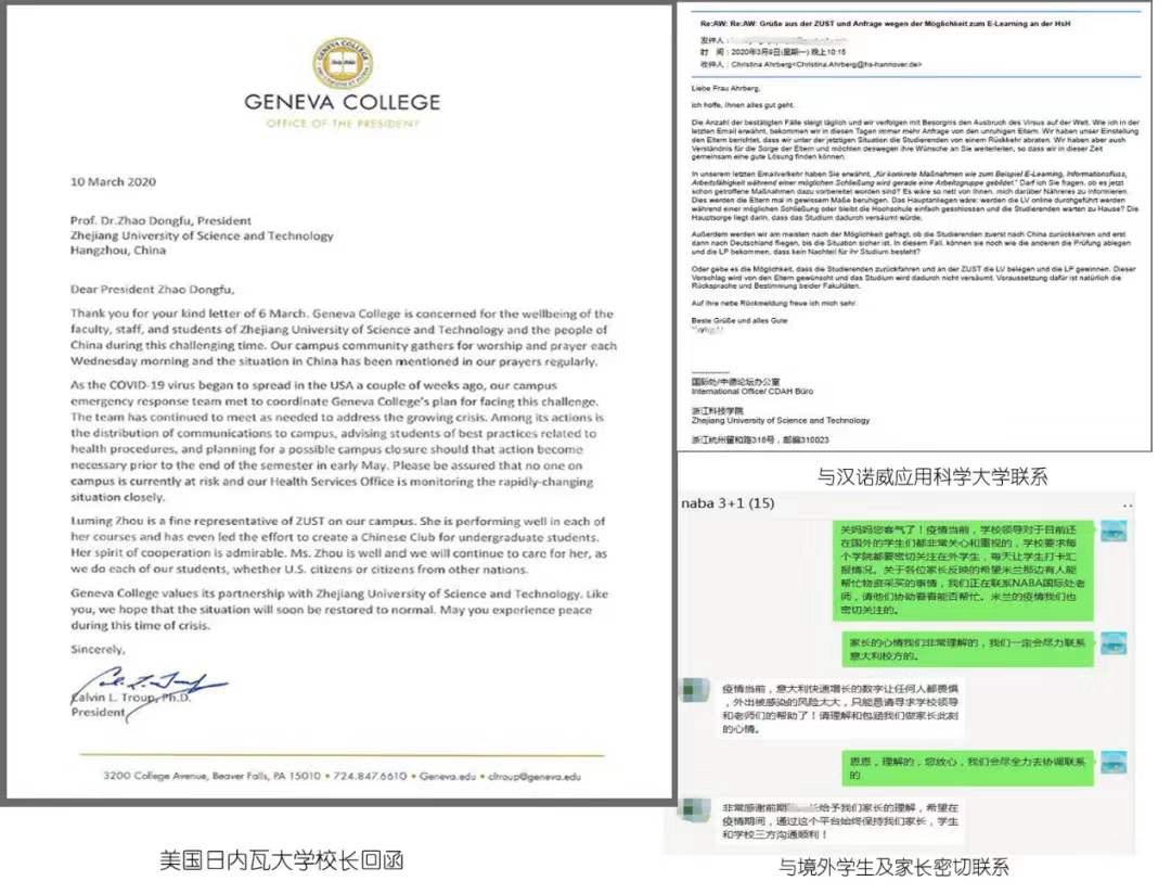 和相关二级学院排摸境外每一位在籍学生情况,做好学生和境外合作院校的联系工作,希望合作院校能在疫情期间为我校学生提供必要的针对性指导和帮助。向在外学生提供我校心理咨询和辅导老师相关联系方式,及时对学生进行心理辅导;安抚好外教情绪,避免不必要的恐慌。不完全统计,累计接受师生通过电话、QQ、微信等方式咨询500多人次,安抚学生和家长情绪,提供学业等方面的建议。