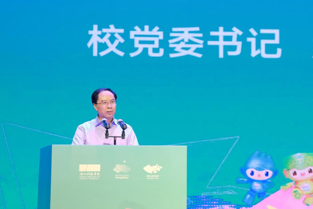 赵东福在致辞中指出,杭州亚运会举国关注、举世瞩目,是“国之大事”“省之要事”。做好此次亚运志愿服务工作既是一次向亚洲向世界展现浙科青年时代风采的重要机会,也是深化我校育人成效的具体检验。他希望志愿者们,提高政治站位,切实增强服务保障的责任感、使命感,厚植家国情怀,展现朝气锐气,激发“强国有我”的青春激情,全心高效地投入亚运志愿服务工作,上好亚运这一堂生动的“大思政课”。勇于争创一流,敬业奉献,做好中外文明互鉴的使者,讲好中国故事,在志愿服务中历练本领,收获友谊,向全世界展现可信、可爱、可敬的中国形象,彰显中国青年形象。强化安全意识,遵守工作纪律,严格遵守岗位规范和工作纪律,筑牢安全防线,让亚运志愿服务成为大学生活中一段值得永远回忆的美好经历。