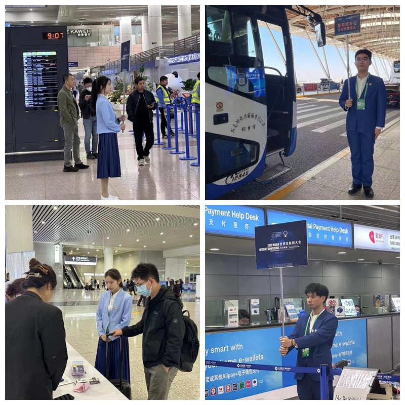 2023年世界互联网大会乌镇峰会于11月8日开幕。开幕前,我校40名“小梧桐”志愿者入驻上海浦东机场和杭州东站,负责提供接送站服务。