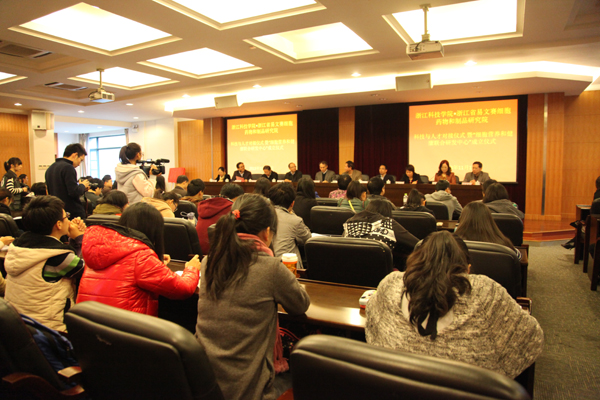 11月14日,浙江科技学院与浙江省易文赛细胞药物和制品研究院科技人才对接暨“细胞营养和健康联合研究中心”成立仪式在我校举行。省科技厅党组成员、人事处处长杨春民,省经信委医化办负责人,杭州市经信委、余杭区经信局等相关负责人到会祝贺。校长叶高翔,副校长郑友取,杭州易文赛生物技术有限公司总经理,浙江省易文赛细胞药物和制品研究院常务副院长、国家973计划首席科学家项春生教授出席成立仪式。杭州易文赛生物技术有限公司负责人,浙江日报等媒体,学校相关职能部门负责人及生化学院师生代表130余人参加。仪式由校党委委员、生化学院院长毛建卫主持。