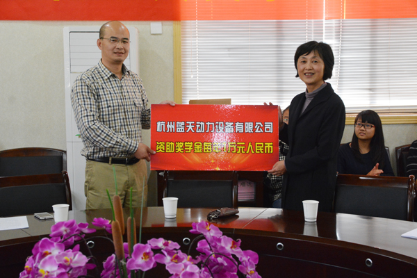 11月7日,“蓝天动力”生化三实奖学金资助仪式举行。“蓝天动力”为我校校友企业。2013年起,该公司每年出资设立生化“三实”奖学金,奖励生化学院在读优秀的学子或学生团队。资助仪式的举行也为“同根同源 携手共进”2013年我校校友活动周拉下帷幕。