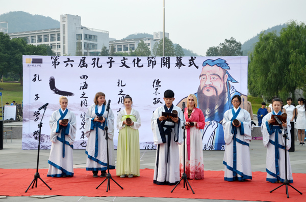 近日,校第六届孔子文化节开幕。校社科联、团委、大学生文化素质教育基地、语言文学院师生、部分学生社团负责人等参加开幕式。