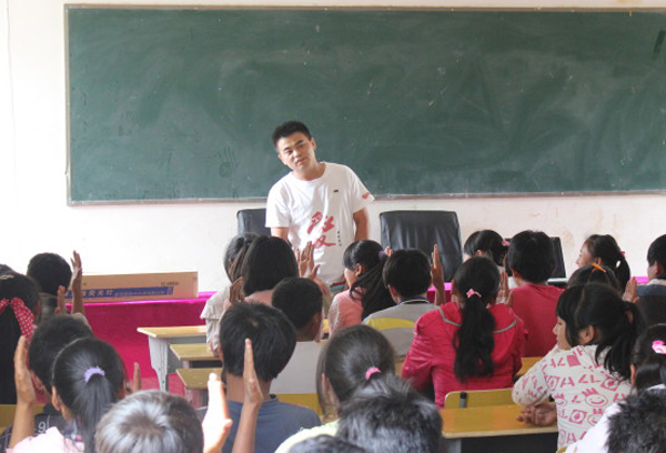 图为樊亮同学参加云南宁蒗爱心毅行支教