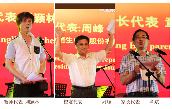 建工学院中法班的章云天同学做梦也想不到自己的老爸竟成了当晚上台发言的家长代表。来自绍兴的章斌先生谈到早在儿子读高三时就开始关注浙科院,开学以来的接触更让他亲身感受到了学校的好氛围和同学的好素养,对儿子四年生活更为放心。