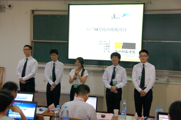 在全国大学生化工设计竞赛华东赛区比赛,36支队伍从初赛的119支队伍中脱颖而出。其中由我校生生化学院成忠、盖希坤、康明老师联合指导,由10级化工专业何吉、李航杰、张攀攀、何鹏星、钟镇同学组合的“创世”队,以新颖的设计方案、规范完整的文档以及在提问环节的机智灵活,获得赛事一等奖。