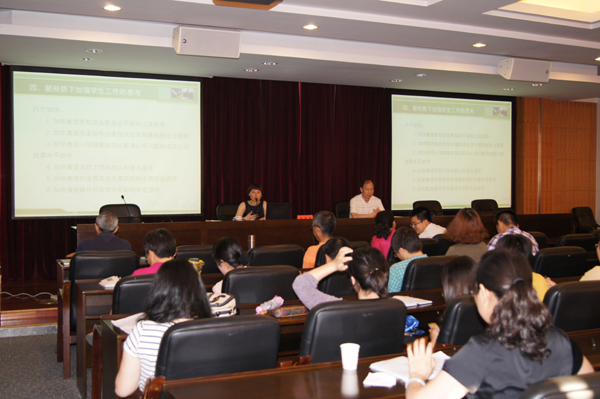 5月28日下午,学工论坛第十八讲开讲。校党委副书记周加敏出席并主持会议,相关部门人员、二级学院学工负责人、全体辅导员及2012级班主任代表听取报告。