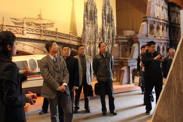 图2为王建华一行参观黑龙江工程学院工程文化博物馆