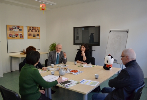 3月5日,埃尔福特市市立图书馆馆长库斯伯博士一行三人来到我校埃尔福特孔子学院参观交流,共商合作事宜。埃尔福特应用科技大学原校长吉尔先生和孔子学院中方院长毕玫女士热情接待客人。