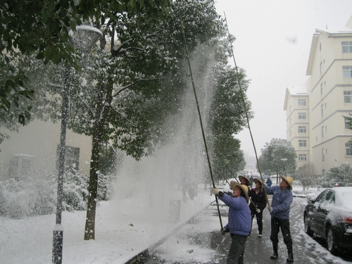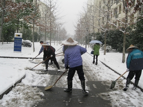1月3日起,杭州迎来今冬第一场雪。连续两天降雪,校园道路积雪严重影响师生正常通行,部分水管冻裂,食堂物资采供困难,给学校后勤保障工作带来严峻的考验。后勤公司及时进行研究部署,明确岗位职责,层层落实,切实做好防雪抗灾和保障供给等工作。