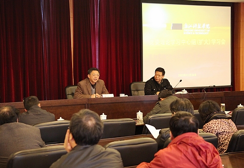 11月26日,校党委理论学习中心组举行扩大学习会,就“贯彻党的十八大精神,全面加强党的建设”这一专题进行深入学习。校党委副书记陈根芳主持会议。中心组全体成员、全校中层干部参加学习。