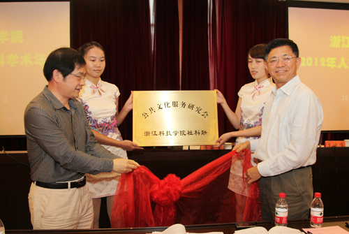 开幕式上,蒋承勇和王建华还共同为我校公共文化服务研究会揭牌。公共文化服务研究会是在我校去年两个人文类学科交叉预研项目基础上成立的,旨在进一步浓厚多学科交流融合的学术氛围,整合资源,创新机制,加强对外合作,力争为具有先发优势的浙江公共文化服务体系建设做出创新探索和切实贡献。