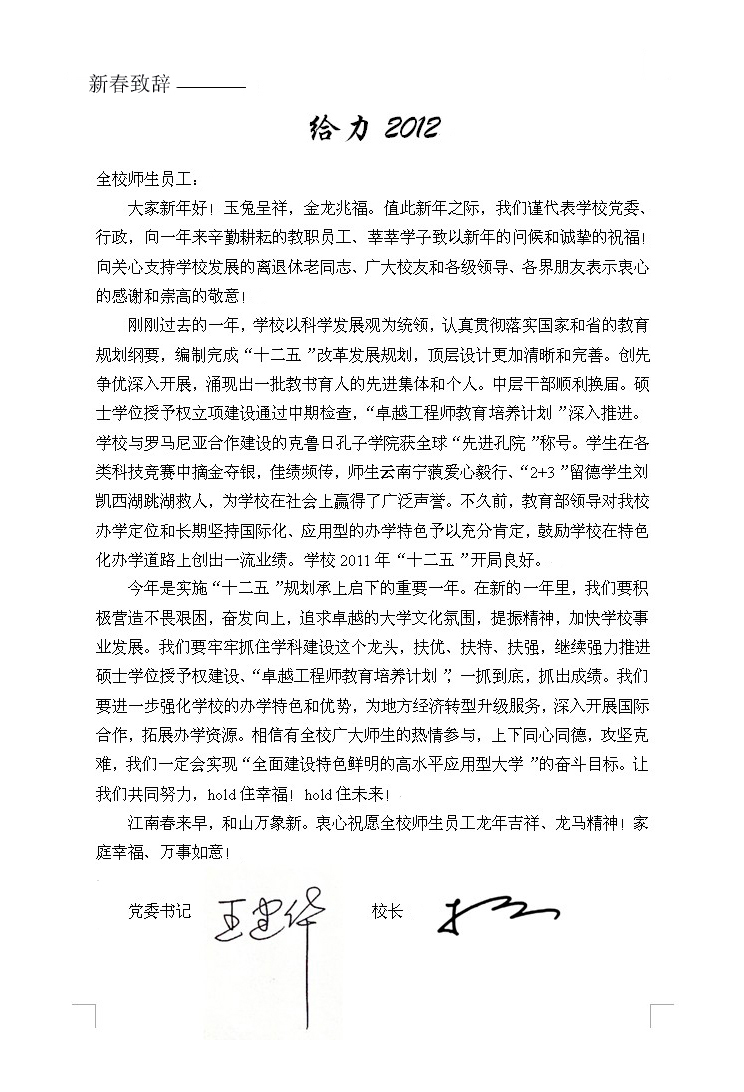 新春致辞:给力2012
