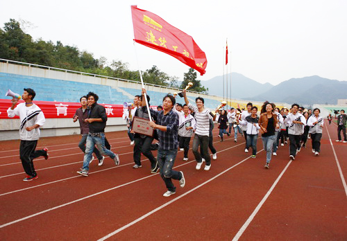 10月27日下午,在校运会闭幕式后,2011-2012学年学生阳光体育长跑活动启动。校党政领导班子成员出席启动仪式。副校长吕进宣布活动开始。