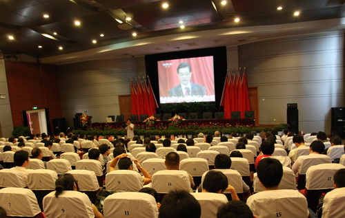 7月1日上午10时,庆祝中国共产党成立90周年大会在人民大会堂隆重召开,我校部分干部师生集中收看大会盛况,聆听了胡锦涛总书记在大会上的重要讲话。