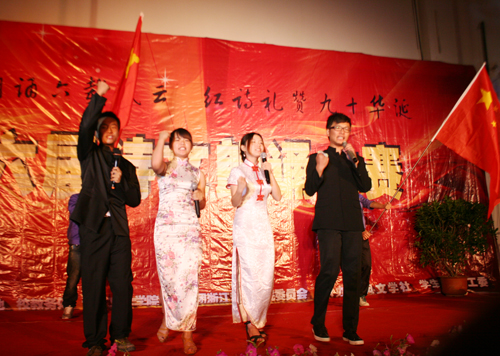 一首充满激情的合唱《爱因为在心中》拉开了当晚比赛的序幕。《黄河》、《鲜红的党旗永不落》、《祖国,我要燃烧》、《我骄傲,我是中国人》、《旗红人美,国运党兴》、《我的祖国》……无论是个人还是团体,学生们或深情款款,或情意绵绵,或感人肺腑,或斗志昂扬,他们用不同的形式诉说着对党的深深爱恋,表达了敢于担负历史重任的信心和决心。