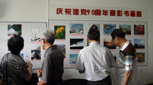 “七一”前夕,离退休党总支开展了多种形式的活动,庆祝建党90周年。摄影书画展中,离退休老同志中的爱好者联手展出了自己作品,30余幅作品多角度展现了祖国的大好河山和中华民族实现伟大复兴过程中和谐振奋的景象,作品突出庆祝建党90周年主题,歌颂了党的光荣历史和丰功伟绩,表达了广大老同志“忆党史、颂党恩、跟党走”的满腔热情和坚定信念,抒发了离退休老同志爱党、爱国的炽热情怀。