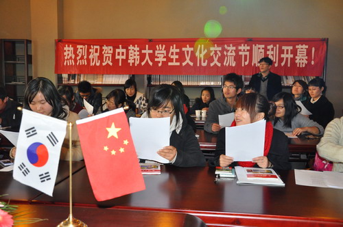 2010年12月28日,我校首届中韩大学生文化交流节开幕。副校长吕进出席开幕式。国际处、语言文学院及威联中心相关负责人和我校部分学生、正在我校访问交流的韩国朝鲜大学师生参加。