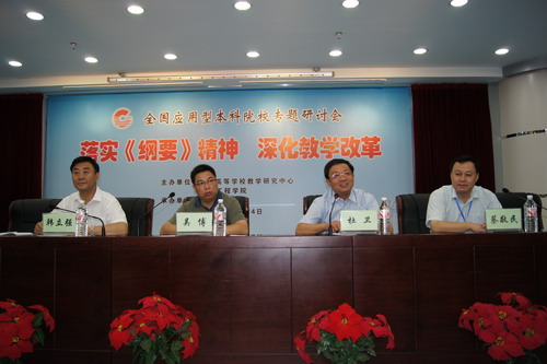 全国高校教学研究会应用型本科院校专门委员会主任陈小虎结合《国家中长期教育改革和发展规划纲要》(2010—2020年),作了题为“对应用型本科教育再思考”的报告。我校校长杜卫主持大会分组讨论,并在闭幕式上发言。副校长赵东福作了关于我校高素质应用型人才培养模式改革与创新的大会发言。参加大会交流发言的还有南京工程学院、黑龙江工程学院、合肥学院等7所应用型本科院校。