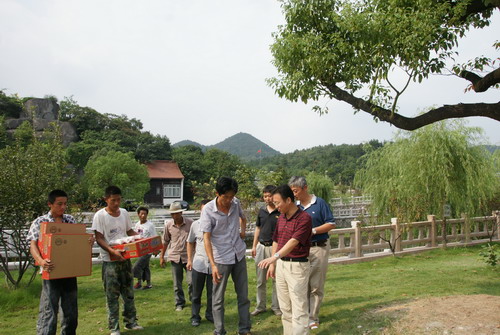 9月19日下午,副校长冯军在产后处负责人陪同下,慰问了上埠河河道护栏施工单位。