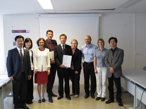 图一:代表团在法国赛尔齐-蓬多瓦兹大学访问,签署两校合作协议