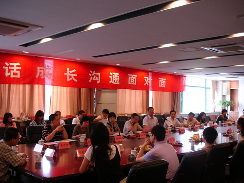 6月8日上午,第二十期“共话成长、沟通面对面”座谈会举行,本期主题是关爱“考研”学生。党委副书记陈根芳主持会议。副校长赵东福与06、07级“考研”学生代表共30多人进行座谈。党委学工部、教务处、产后处、后勤公司、建工学院、生化学院、语言文学院、理学院负责人参加。