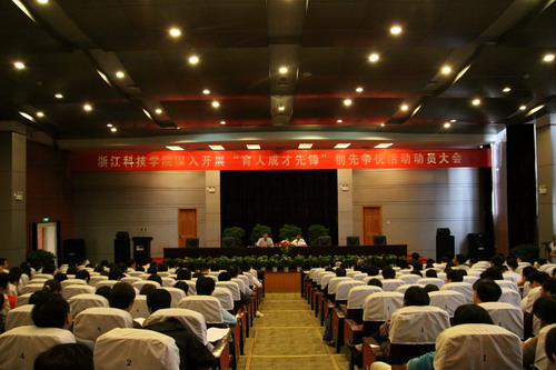 目前,创先争优活动正在全党全面展开,这是我党继学习实践科学发展观活动之后的又一件大事。根据中央精神和省委、教育工委要求,从高校特点和实际出发,我校将深入开展以建设服务型党组织为主要内容的“育人成才先锋”创先争优活动。会上,校党委书记徐志平代表学校党委对我校深入开展这一活动进行动员。