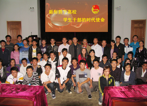党委学工部、校团委等部门负责人,各二级学院分团委书记,校级学生组织主要骨干,二级学院学生会主席团成员、2009级新生班级班长、团支书等300多人听取了报告。