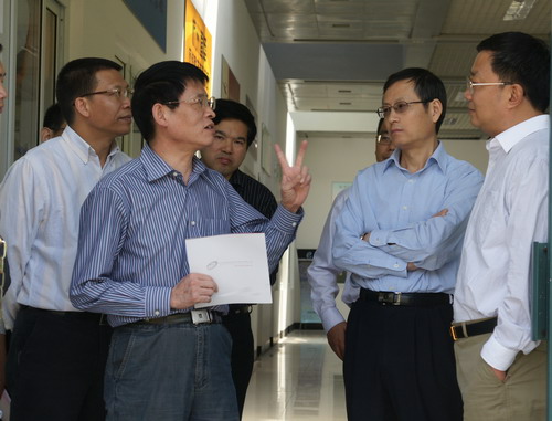 汇报会后,蒋胜祥一行还参观了大学生创业广场等,考察大学生创业情况。