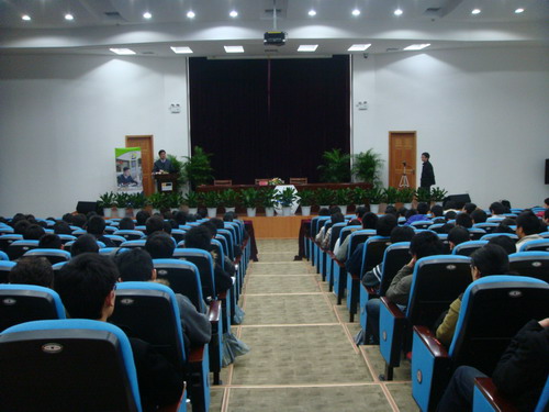 校团委、电气学院相关负责人,大学生KAB创业俱乐部、电气学院“企明星”俱乐部成员近300人 听取了报告。