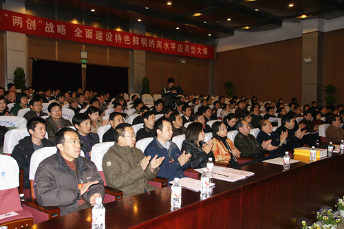 徐志平同志代表上届党委向大会作题为《坚持科学发展,服务“两创”战略,全面建设特色鲜明的高水平应用型大学》的报告。 报告分4个部分:一、过去五年的工作;二、今后五年的奋斗目标;三、全面建设特色鲜明的高水平应用型大学的主要任务;四、以改革创新的精神全面加强和改进党的建设。