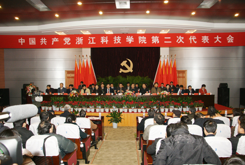 中国共产党浙江科技学院第二次代表大会,是在全国上下深入学习贯彻党的十七大精神,推动科学发展,促进社会和谐,继续全面建设小康社会的新形势下召开的一次十分重要的大会。本次大会的主题是:高举中国特色社会主义伟大旗帜,以邓小平理论和“三个代表”重要思想为指导,深入学习实践科学发展观,全面落实省委“创业富民、创新强省”总战略,继续解放思想,坚持改革创新,动员和带领全体党员和广大师生员工,为把我校建设成为特色鲜明的高水平应用型大学而努力奋斗。