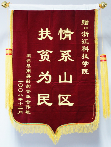 近日,学校收到了天台县南屏乡送来的感谢信和锦旗。南屏乡党委、政府代表该乡莳药专业合作社34户农户、126户种植户对我校及时伸出的援手表示诚挚感谢。