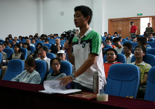 生化学院、语言文学院等学院学生和从校外赶来的市民近300人聆听了报告,与周教授进行了精彩的互动。