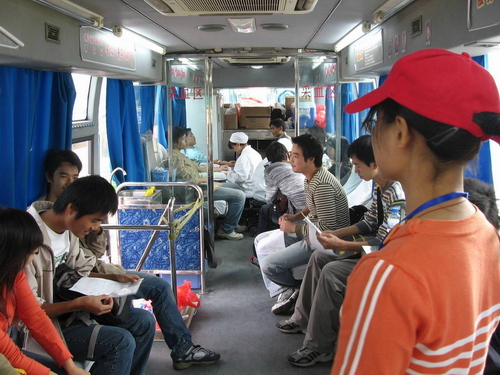 10月9日上午,机械学院青年志愿者协会将流动采血车又请进了校园。当天的献血活动中,一百多名师生积极参加,共献血近50000毫升。