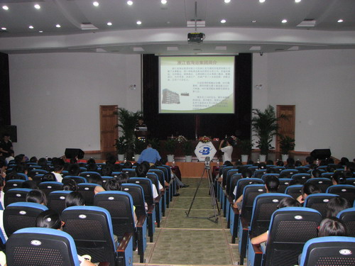 9月5日下午,“优秀企业家进校园”活动邀请浙江省海运集团有限公司董事长、党委书记单树林与我校学生面对面。本场报告会由经管学院承办,面向新生,但是定于下午2点30分开始的报告会,提前15分钟就没有位置了,很多慕名而来的高年级同学只好站在报告厅后排或者直接坐在过道上。两个多小时的报告和提问交流之后,还有一堆经管学院2008级的新生围在浙江省海运集团有限公司单树林董事长和学院领导的身边提问。他们不仅仅是被这位成功的高级职业经理人丰富的人生经历所吸引,更多的是对一种人生榜样的关注。
