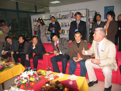 走进中德学院德国文化区,专家看到文化区内丰富的德文书刊音像资料,就感受到了浓厚的德国文化氛围。中德学院负责人介绍了文化区学生自我管理运作模式和学生自我学习的有关情况。专家们与中外师生进行了交流。