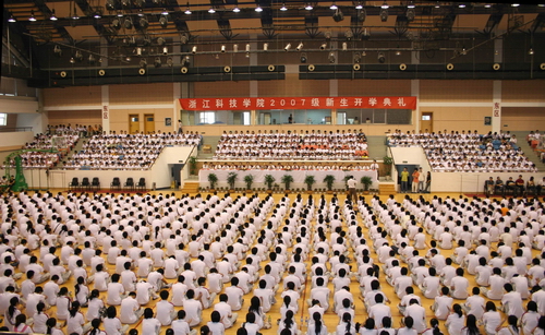 9月16日上午9点,2007级新生开学典礼在西湖体育馆隆重举行。校党政班子成员徐志平、杜卫、胡浙平、陈浩、陈根芳、吕进、鲁凤、黄丰平出席会议并在主席台就座。各二级学院和相关职能部门负责人及2007级全体同学参加了开学典礼。典礼由校党委副书记陈浩主持。