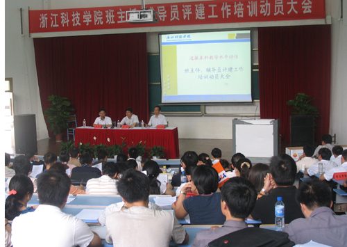 陈浩作动员报告。他要求全校师生应该以如履薄冰、如临大敌的姿态,大战百天,扎扎实实的做好“评建”的每一项工作,强化教风、学风,为学校顺利通过本科评估而不懈努力。