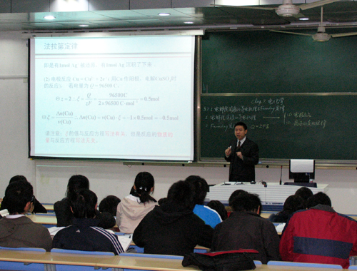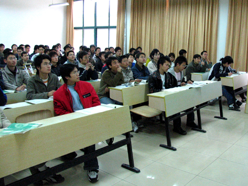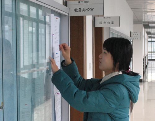 清晨,西密湖畔已有20多位同学在晨读。8时左右,师生陆续来到教室。教室的黑板上都书有“以本科教学评估为契机,全面推进教学建设和改革,努力提高人才培养质量”等有关“迎评促建”的宣传标语。全校师生正准备以主人翁的姿态和饱满的热情投身到“迎评促建”的各项工作中去。