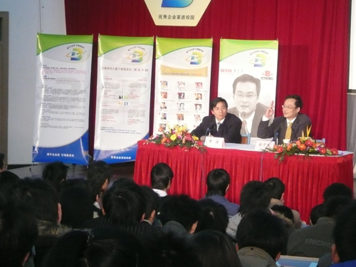 校团委、电气学院等单位负责人、部分分团委书记和校大学生KAB俱乐部、大学生创业者协会、大学生球迷协会等600名同学参加了此次企业家进校园活动。