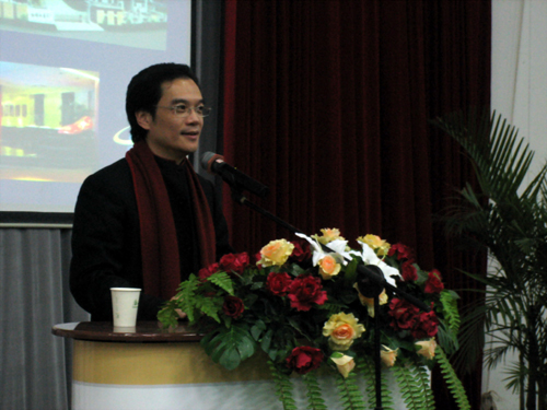 12月13日晚,第7期“握手企业家,引领新成长”优秀企业家报告会在A4-122举行,报告厅聚满了闻讯赶来的800多名师生,中国五四青年奖章获得者、中国鞋文化第一人、红蜻蜓集团董事长钱金波与我校师生进行了一场别开生面的精彩交流,校党委副书记陈浩主持了本次报告会。