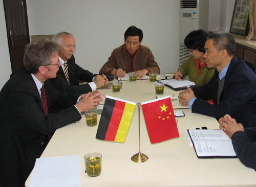 会谈期间,双方各自介绍了本校的办学历史、现状及发展规划,就多种形式的合作交流,特别是国际间科技合作、中德中小型企业的技术服务、硕士生合作培养等事项进行了深入的探讨,并希望能在目前交流的基础上继续扩大交流和提升层次。会谈以后,各位来宾参观了我校新校区建设,并对此给予了高度评价,对两校合作交流的前景充满了信心。