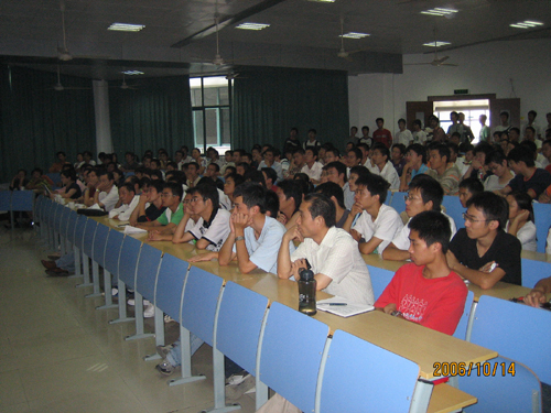 在讲座接近尾声时,还增设了互动问答环节,许多学生都踊跃地就自己感兴趣的国防问题向乔松楼教授请教。整场讲座气氛热烈,座无虚席,收到了令人满意的互动效果。