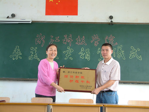 在捐资仪式上,鲁凤代表学校分别接受了苍南县人民政府和五凤中心学校制作的“捐资助学、功在千秋”、“情系五凤、爱满山区” 牌匾。