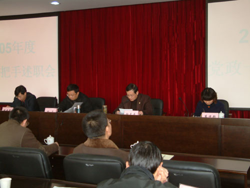 会上,应方彩作了动员讲话,强调了这项工作的目的和重要意义。李建章对我校民主测评工作作了具体要求。学校党委书记徐志平、校长杜卫分别作了年度总结报告。与会人员以无记名方式对学校党政“一把手”2005年度总结报告进行了民主评议,并对校领导班子成员进行了民主测评。