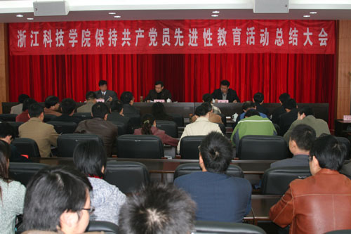 11月23日,学校保持共产党员先进性教育活动总结大会在小和山校区举行。院党委书记徐志平代表学校先进性教育活动领导小组作了题为“树立科学发展观,建立完善长效机制,巩固深化教育成果,不断提高党在高校的办学治校能力”的总结报告。省委先进性教育活动督导组高校二组组长沈森作重要讲话。院党委副书记胡浙平主持会议。省委先进性教育活动督导组高校二组副组长朱金中和组员章德兴,院党政领导,中层干部,各党总支、直属党支部委员,支部书记,民主党派负责人,离退休老同志代表,教授代表,学生代表,院先进性教育活动领导小组办公室成员出席会议。